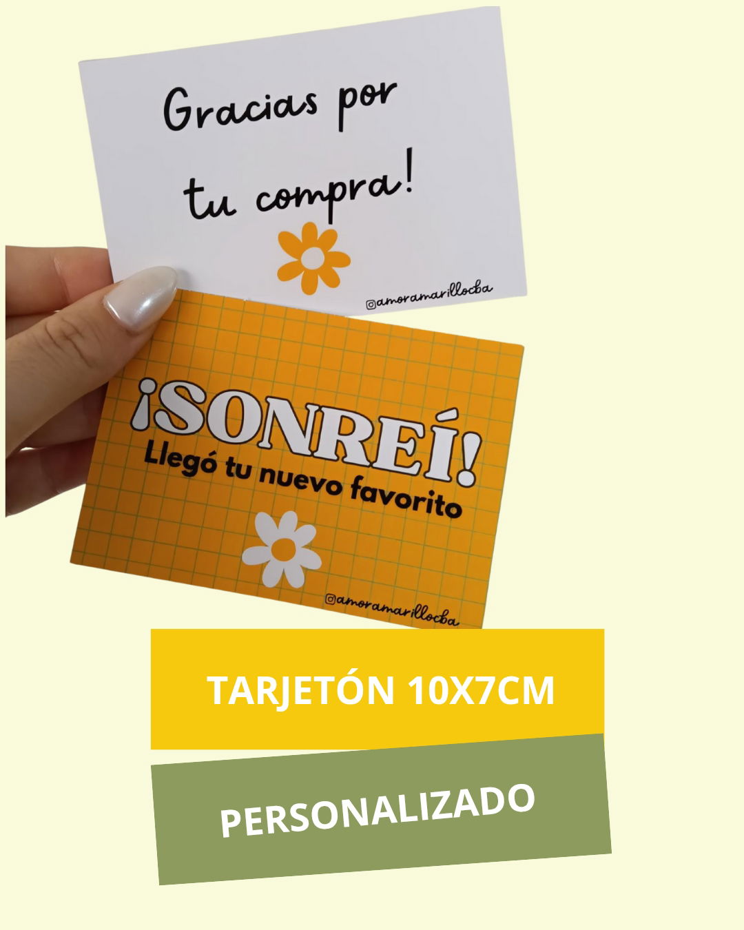 Dale ese toque especial a tus envíos, productos o agradecimientos con nuestros tarjetones impresos a todo color 💛